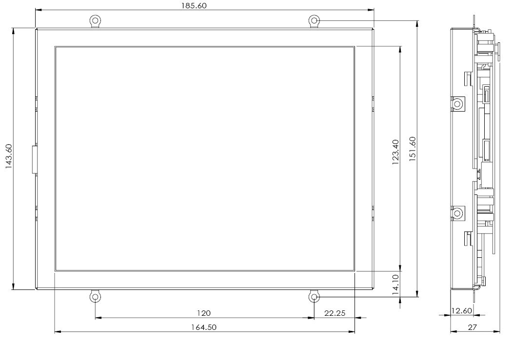 Dimensions 185.6 x 143.6 x 27 mm